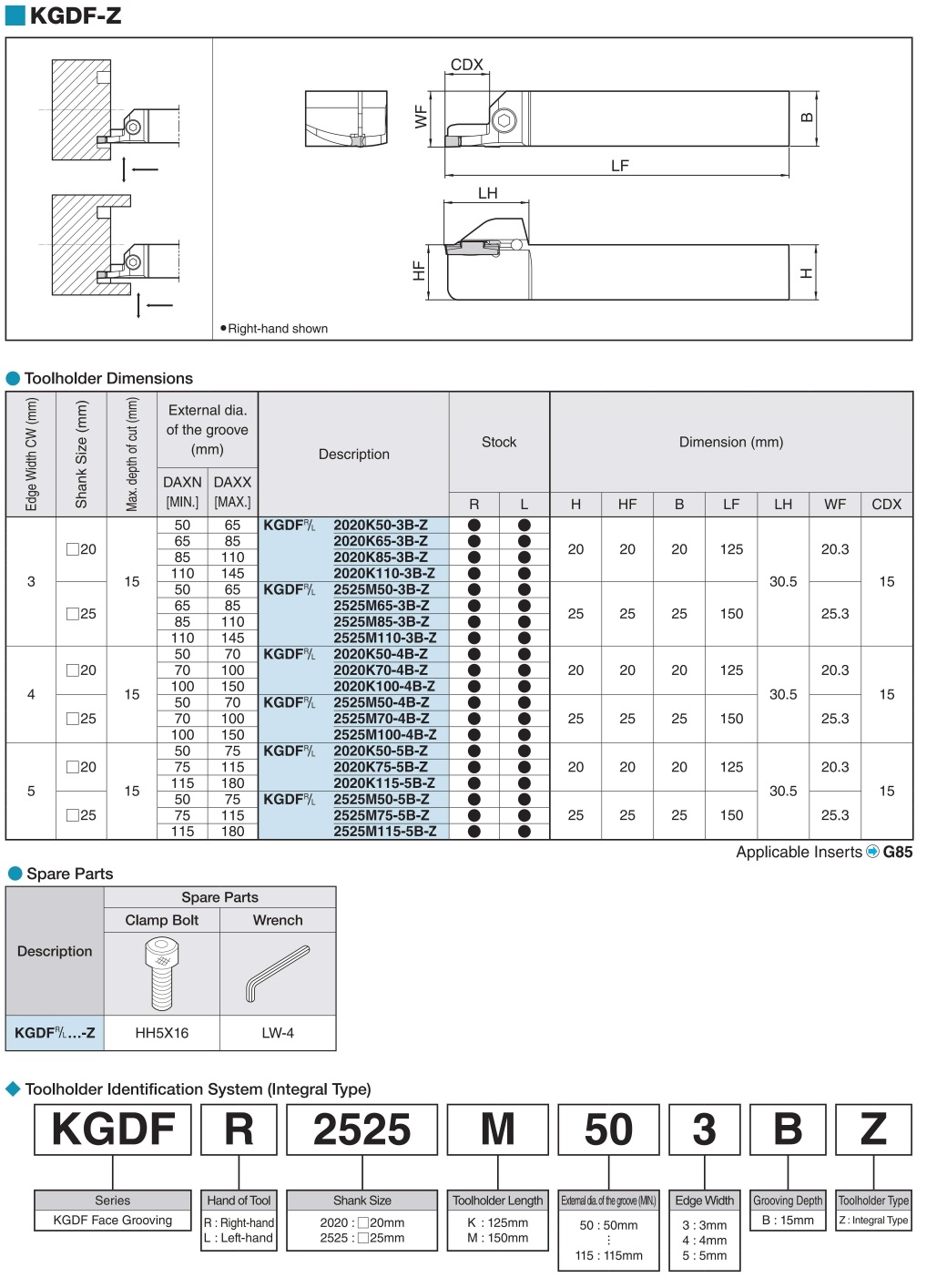 Cán dao cắt đứt - KGDFR2525M50-5B-Z
