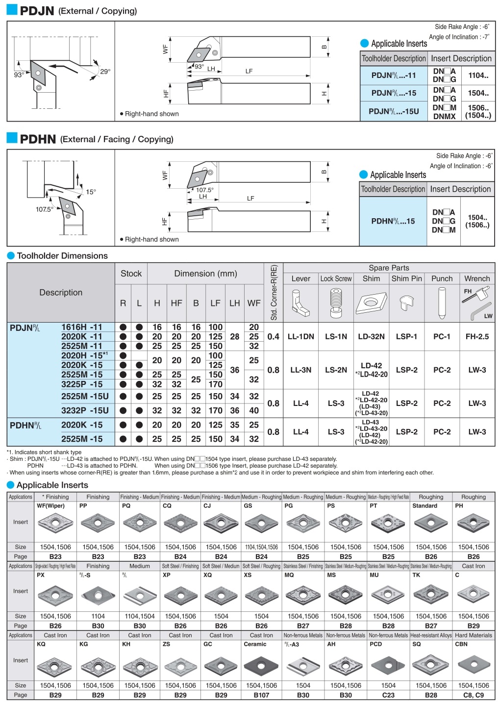 | Compatible insert clearance angle | Negative 0 ° (N) | Compatible tip cutting edge length | 15 |