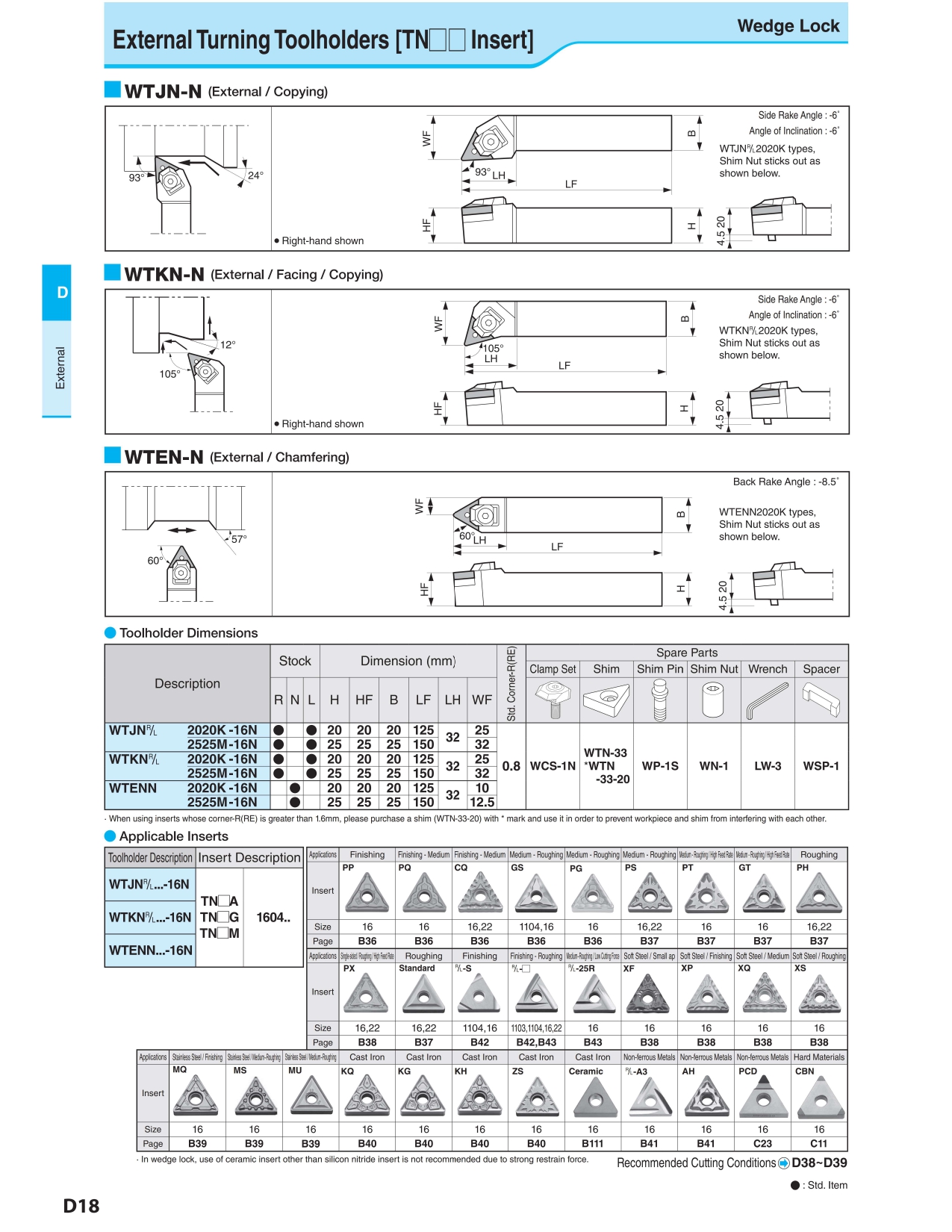 | Compatible tip | TN □ A1604 .., TN □ G1604 .., TN □ M1604 .. | Clamp set | WCS-1N |