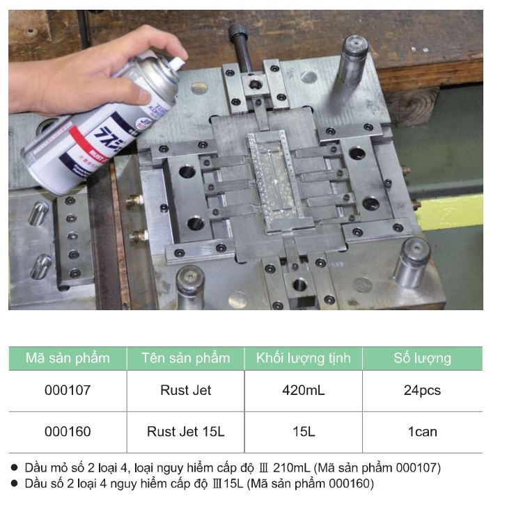 Trước khi sử dụng khuôn cần sử dụng chất tẩy rửa JIP 619 để tẩy lớp chống gỉ.