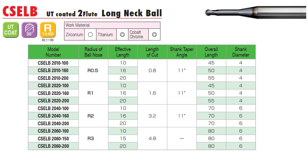 Dao Cầu Cổ Dài CSELB Cho Ngành Nha Khoa- Cutting Tools For The Dental Industry