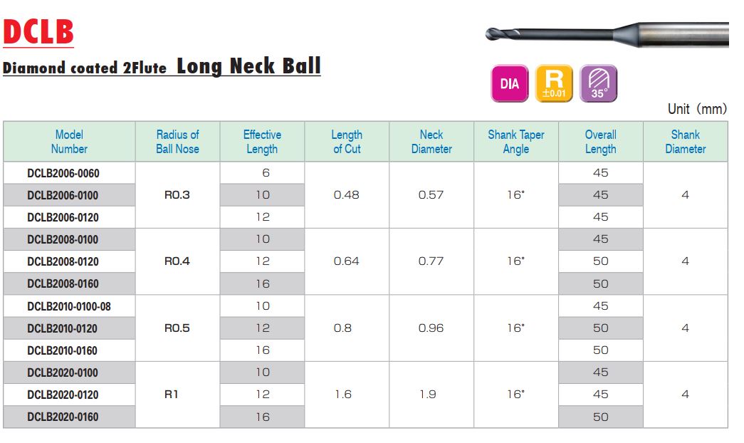 Dao Cầu Cổ Dài Phủ Kim Cương DCLB Cho Ngành Nha Khoa- Cutting Tools For The Dental Industry