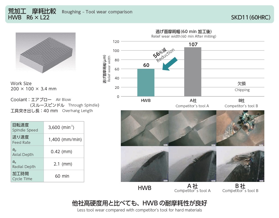 Thích hợp gia công khuôn mẫu trước nhiệt độ cứng 50-70 HRC.