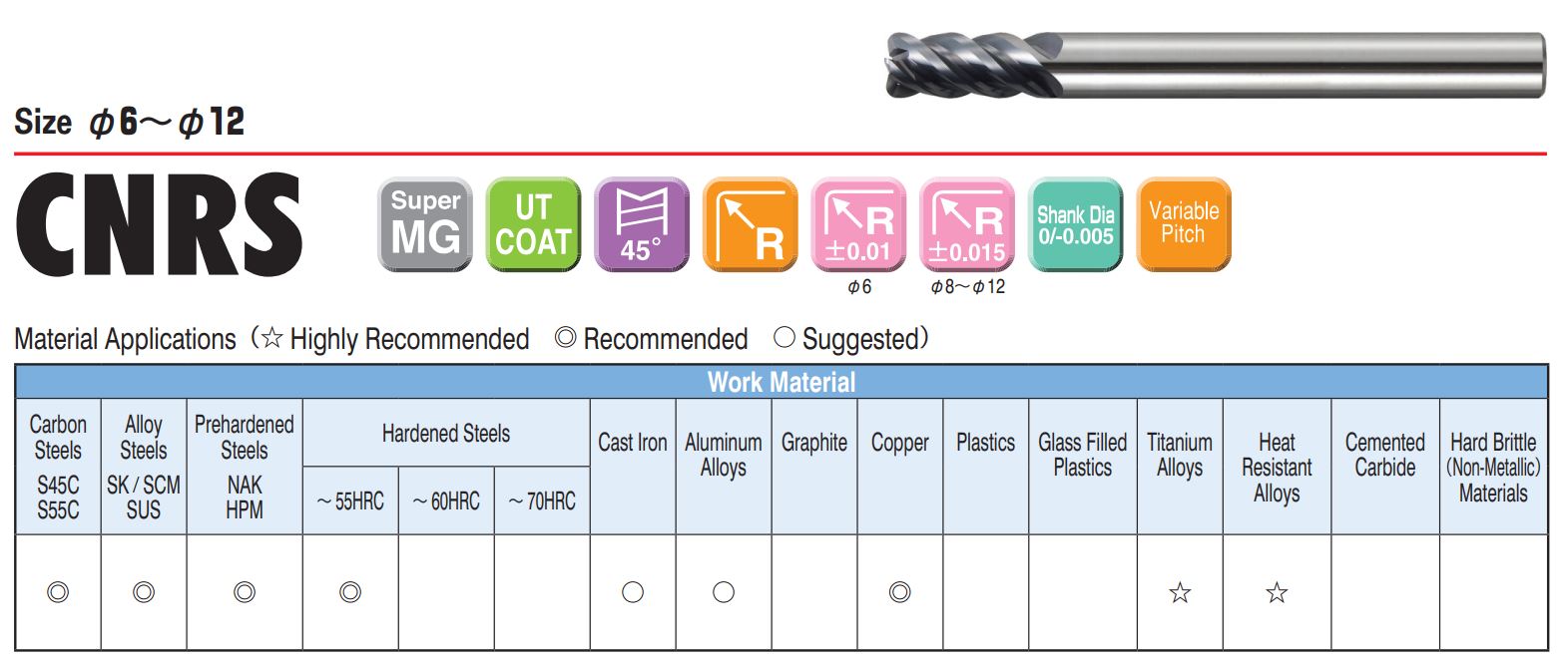 | CNRS4080-05-16 | 8 | R0.5 | 16 | 100 | 8 |
