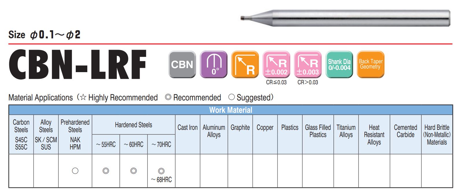 | CBN-LRF20025-005X5 | 0.25 | R0.05 | 0.5 | 0.1 | 0.24 | 15° | 50 | 4 |