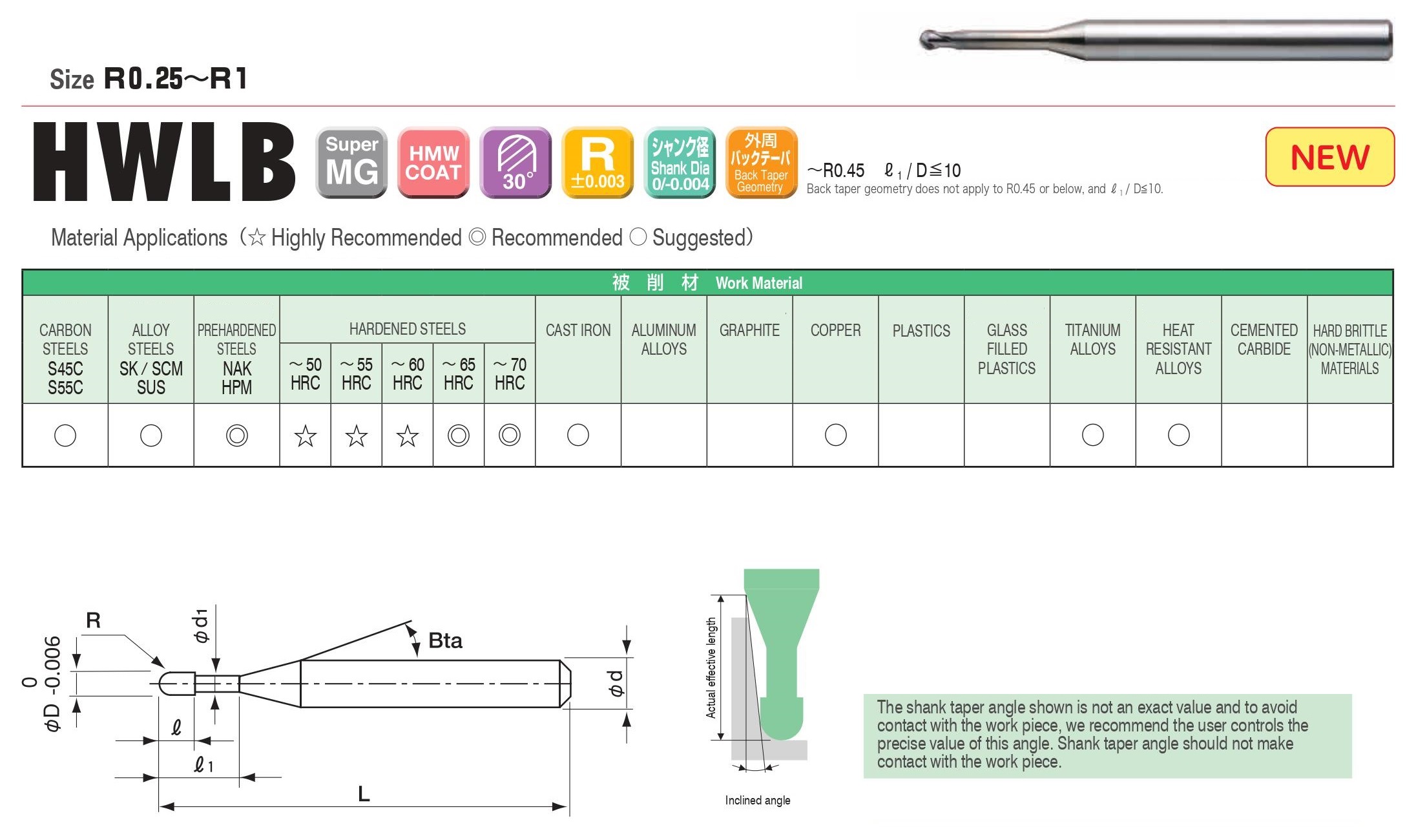 Thích hợp gia công khuôn mẫu sau nhiệt độ cứng 50-60HRC.