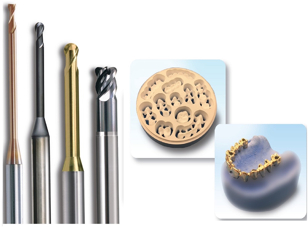 Dây chuyền dao phay cuối nha khoa Union Tool có kết cấu cacbua rắn, hình học cắt và lớp phủ đã được thiết kế đặc biệt để sử dụng với các vật liệu nha khoa ngày nay bao gồm oxit zirconium, Polymethyl Methacrylate (PMMA), sáp, crôm coban, titan, thủy tinh và gốm - vật liệu được sử dụng phổ biến nhất trong phục hình răng. Các phần bổ sung cho danh mục bao gồm dao phay ngón mũi cầu CVD-D có đế cắt cứng để gia công thô và tinh trước gốm thủy tinh / e.max. Các dao phay mũi bi cacbua rắn cho zirconium oxide để sử dụng trong máy phay nha khoa Roland cũng đã được thêm vào.
