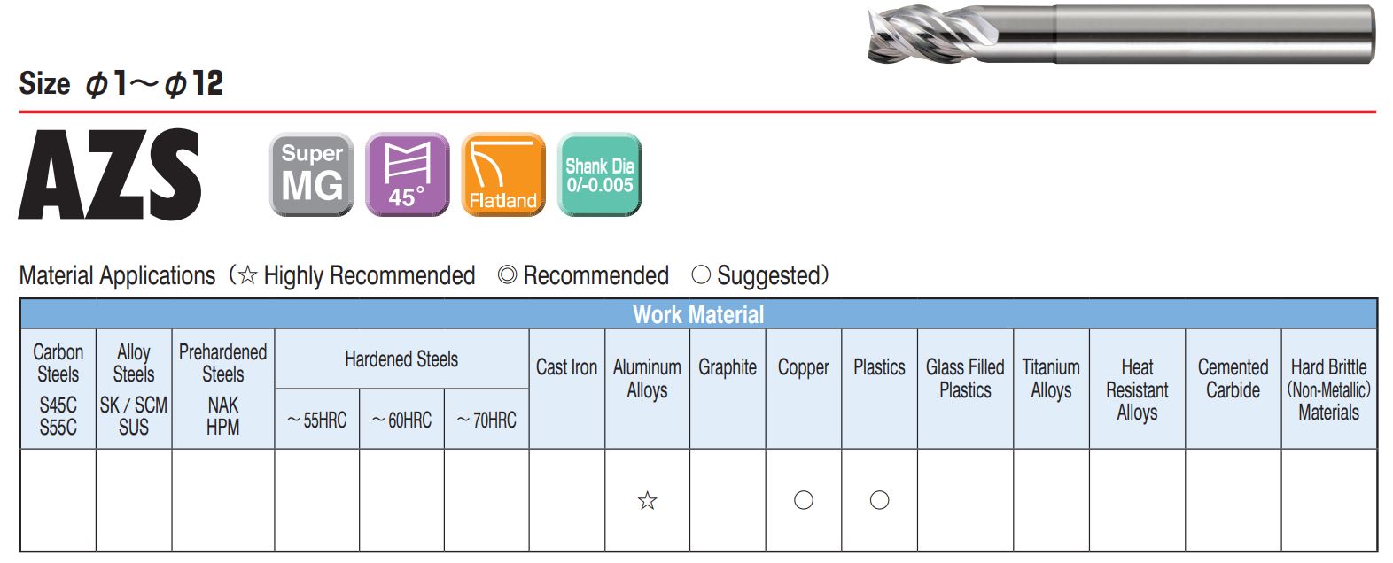 | Dao Phay Phẳng 3 Me D5x15x70L Union Tool Model AZS3050-150 Hãng sản suất: Union Tool (Nhật Bản) Model : AZS3050-150 Thông Số Kĩ Thuật: Vật liệu: Hợp kim siêu cứng MG (Super MG Carbide) Kích thước: D5 Chiều dài lưỡi cắt : 15mm Chiều dài cắt : 10mm Chiều dài : 70 mm Số lưỡi cắt: 3 me Góc xoắn: 45 ° Thích hợp gia công Nhôm, Đồng, Nhựa |
