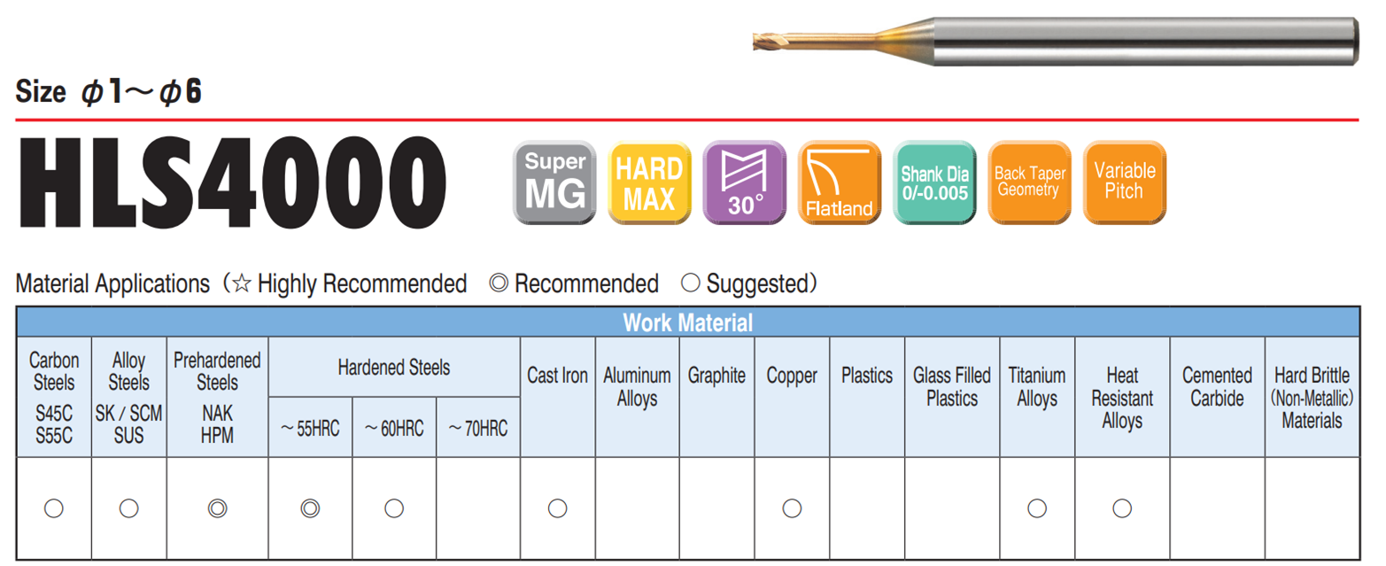 Thích hợp: gia công khuôn mẫu sau nhiệt < 60HRC.