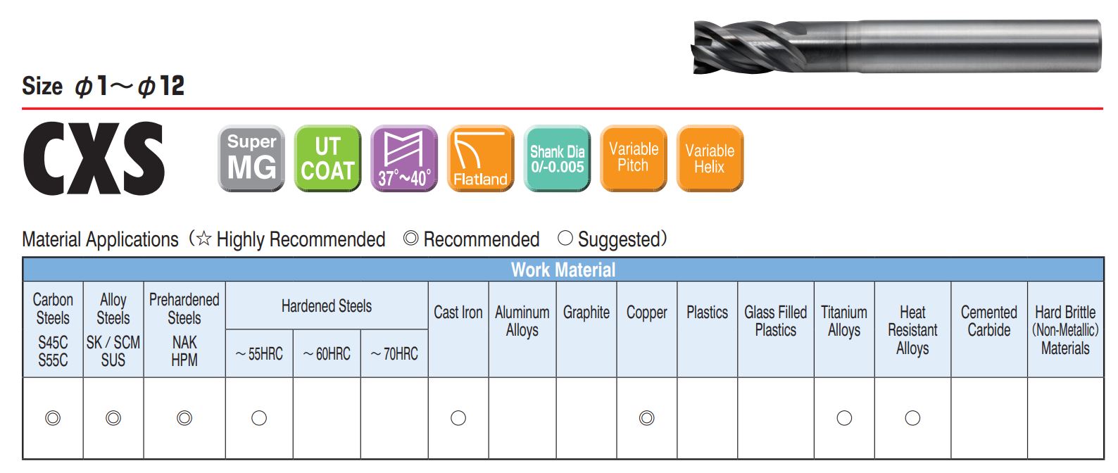 Thích hợp gia công chi tiết, vật liệu thép SUS, thép trước nhiệt < 55 HRC