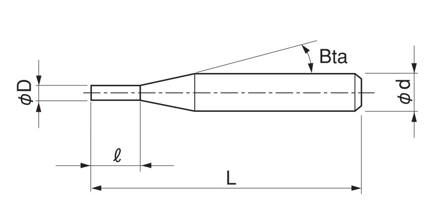 | Model | Đường Kính Dao (Outside Diameter) φD | Chiều Dài Lưỡi Cắt (Length of Cut) ℓ | Góc Côn Cổ Dao (Shank Taper Angle) Bta | Tổng Chiều Dài (Overall Length) L | Đường Kính Cán (Shank Diameter) φd |