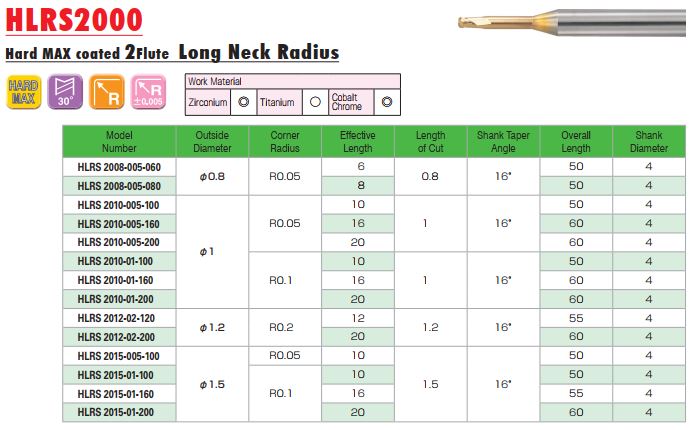 Dao Phay Trụ Bo Góc R 4 Me HLRS Cho Ngành Nha Khoa- Cutting Tools For The Dental Industry