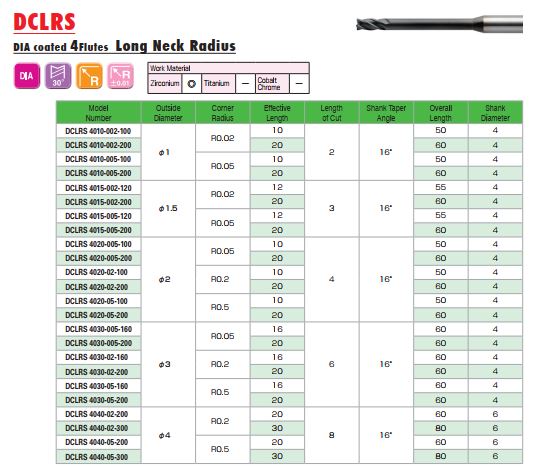 Ứng dụng: Phay thép có độ cứng cao. thép sau nhiệt, Khuôn cho nghành nha khoa, sản xuất răng giả