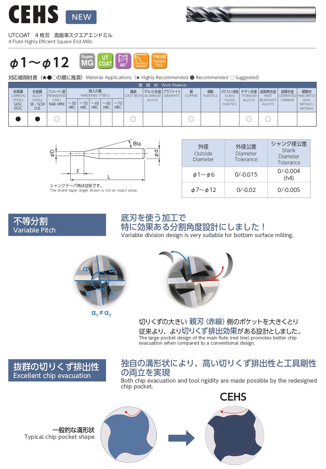 Ứng dụng: Phay thép có độ cứng cao. thép trước nhiệt, Đồng , Nhôm, vật liệu mềm,…
