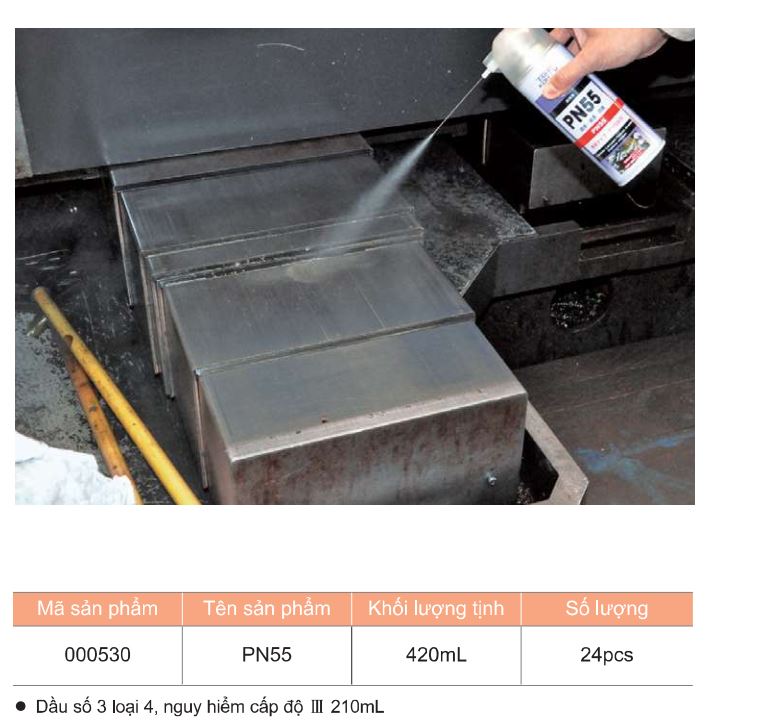 Chống gỉ sét PN55 000530 bôi trơn, chống gỉ sét cho các chi tiết kim loại hoạt động lâu ngày bị oxy hóa. Sản phẩm không chứa dầu silicoln nên lớp màng chống gỉ bám dính chặt tăng hiệu quả bảo vệ được lâu dài