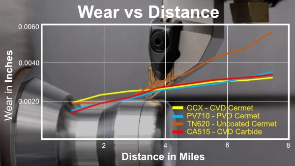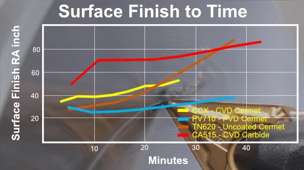 Mặc dù thử nghiệm này cho thấy rằng insert CCX - cermet phủ CVD mang lại hiệu suất tổng thể tốt nhất khi gia công tinh thép tốc độ cao và insert cermet lớp phủ PV710 duy trì bề mặt tốt nhất, nhưng điều quan trọng cần nhớ là khả năng gia công insert còn phụ thuộc vào từng ứng dụng.