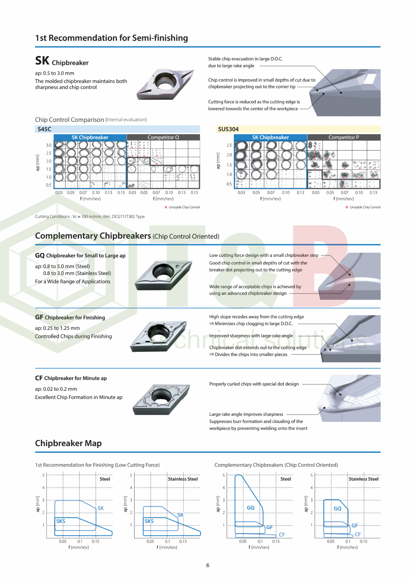 Chipbreaker SK chuyên gia công tiện bán tinh