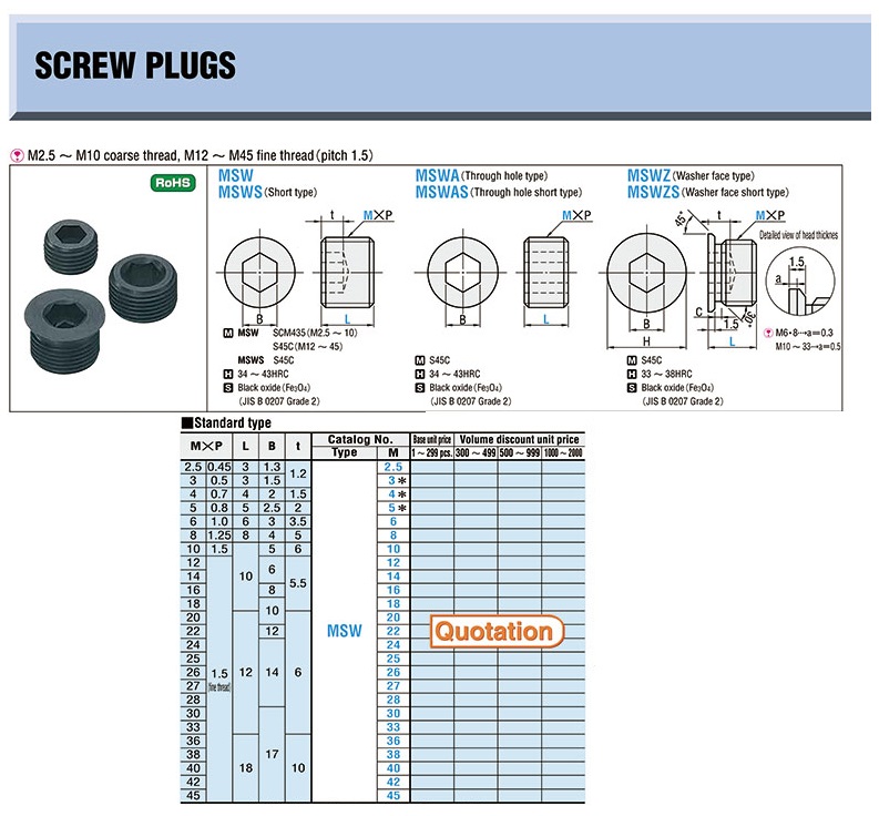 Linh Kiện Ốc Cụt Khuôn Mẫu MSW M16X10 ,SCREW PLUG MSW16