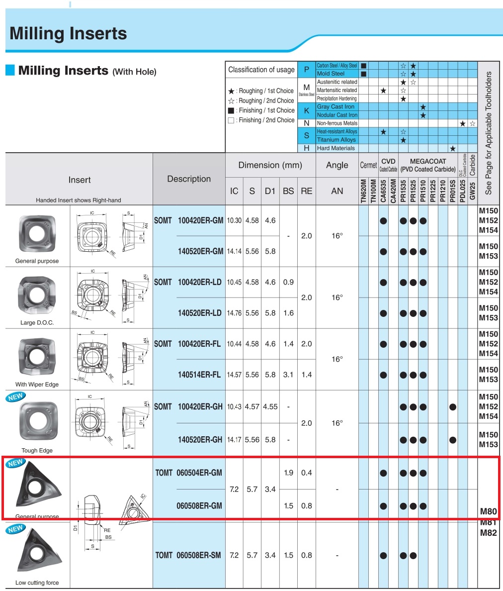| Shape (first letter of model number) | T (equilateral triangle) | Work material | Steel / stainless steel |