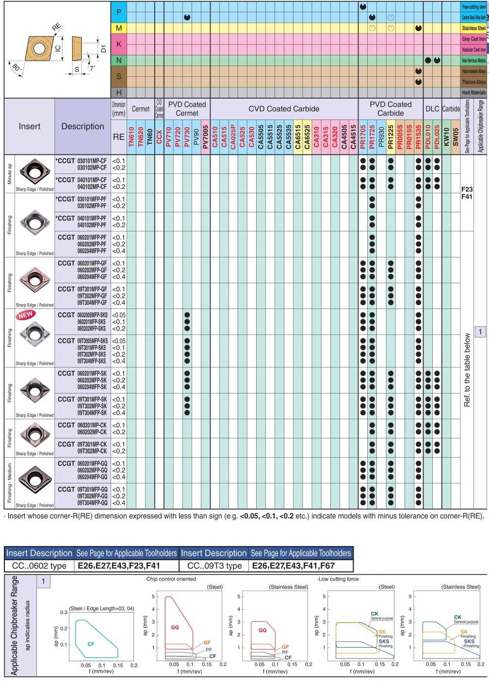 | shape | C (80 ° rhombus) | Work material | K (cast iron) [○] / N (non-ferrous metal) [○] / S (heat resistant alloy / titanium alloy) [○] |