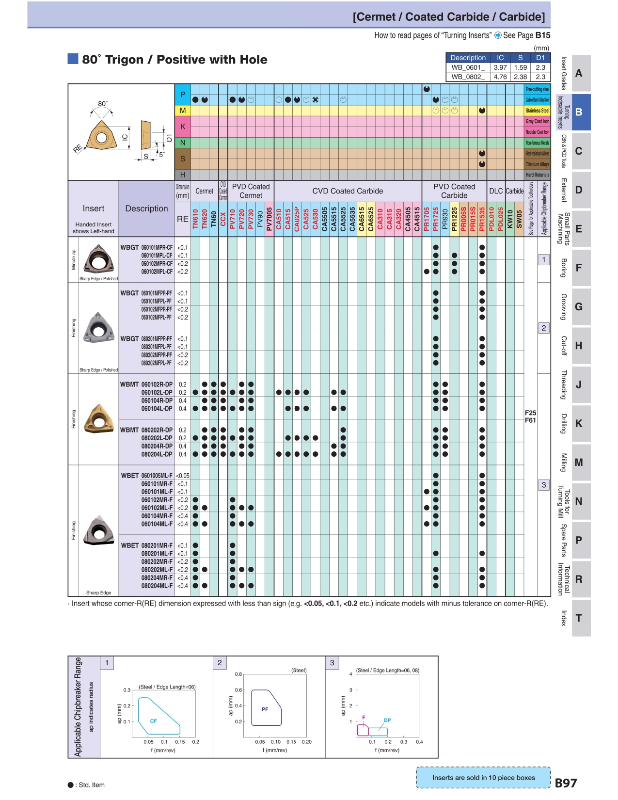 | Use (breaker) | Finish cutting | Corner R (nose R) (mm) | 0.4 0.4 |