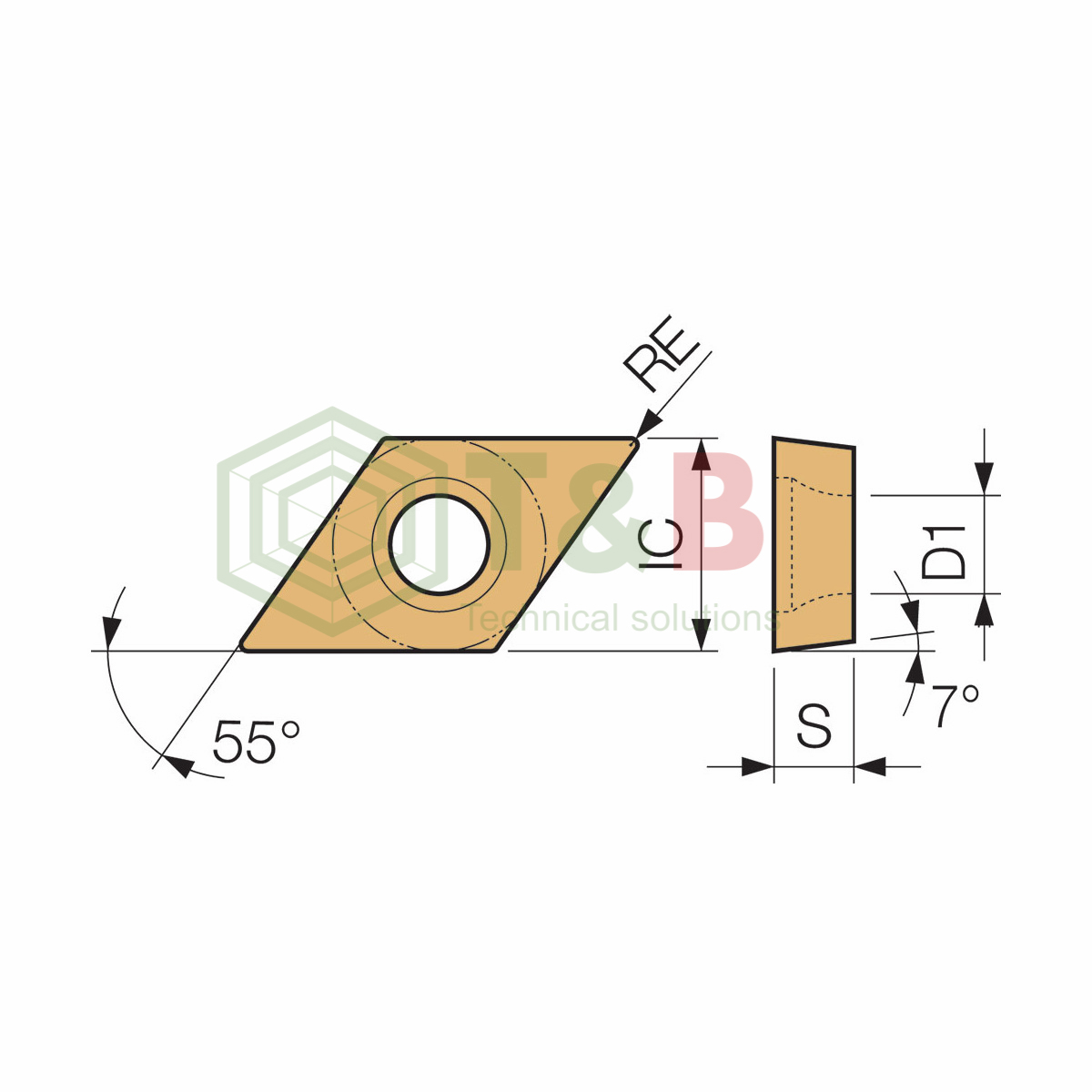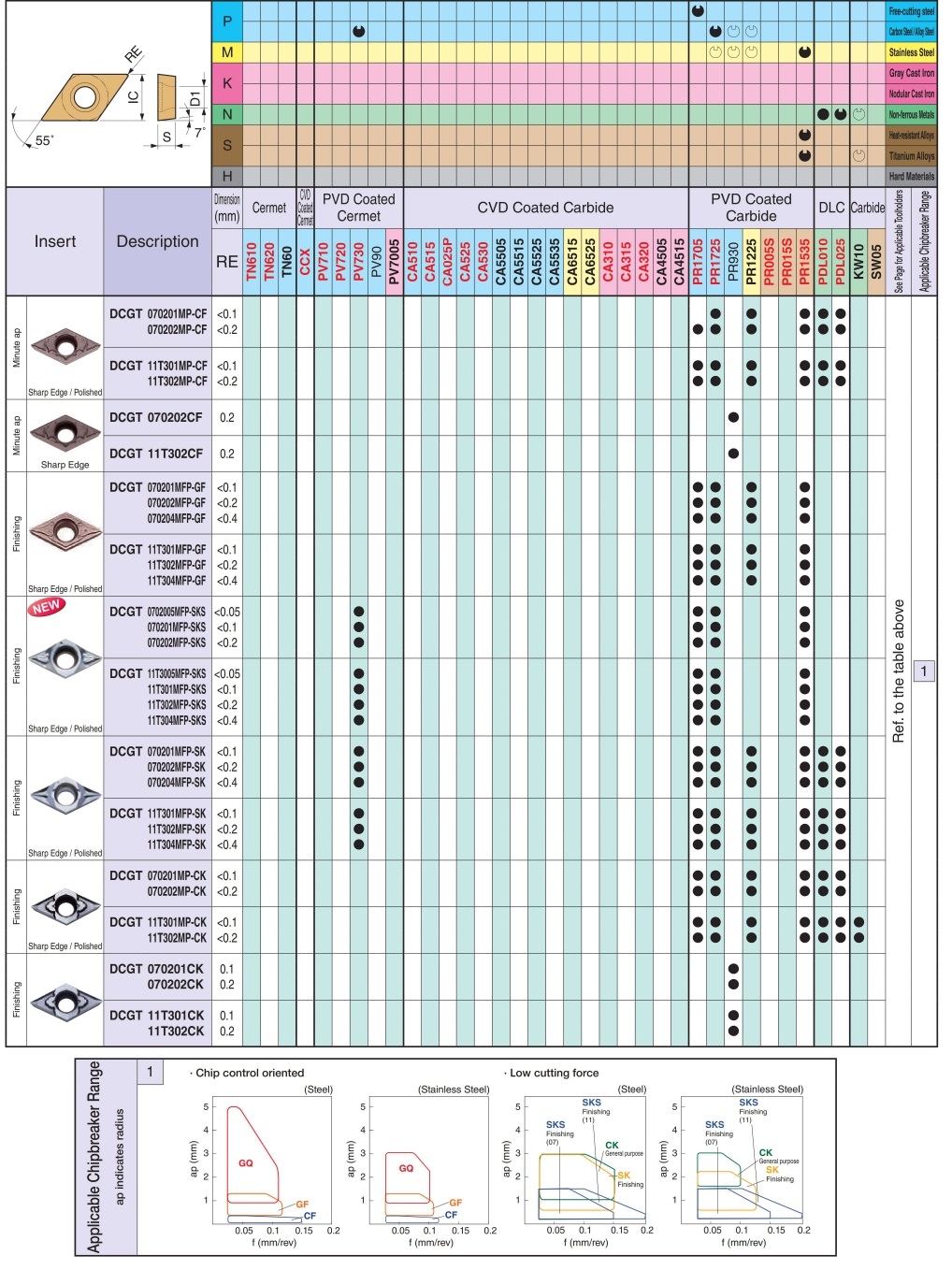 | shape | D (55 ° rhombus) | Work material | P (steel) [○] |