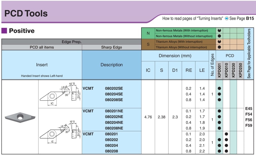 | shape | V (35 ° rhombus) | Work material | P (steel) [○] / M (stainless steel) [○] |