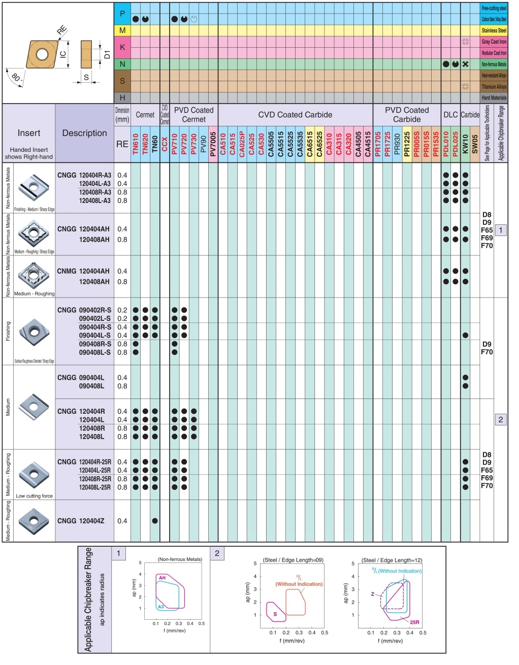 | shape | C (80 ° rhombus) | Work material | K (cast iron) [○] / N (non-ferrous metal) [○] / S (heat resistant alloy / titanium alloy) [○] |