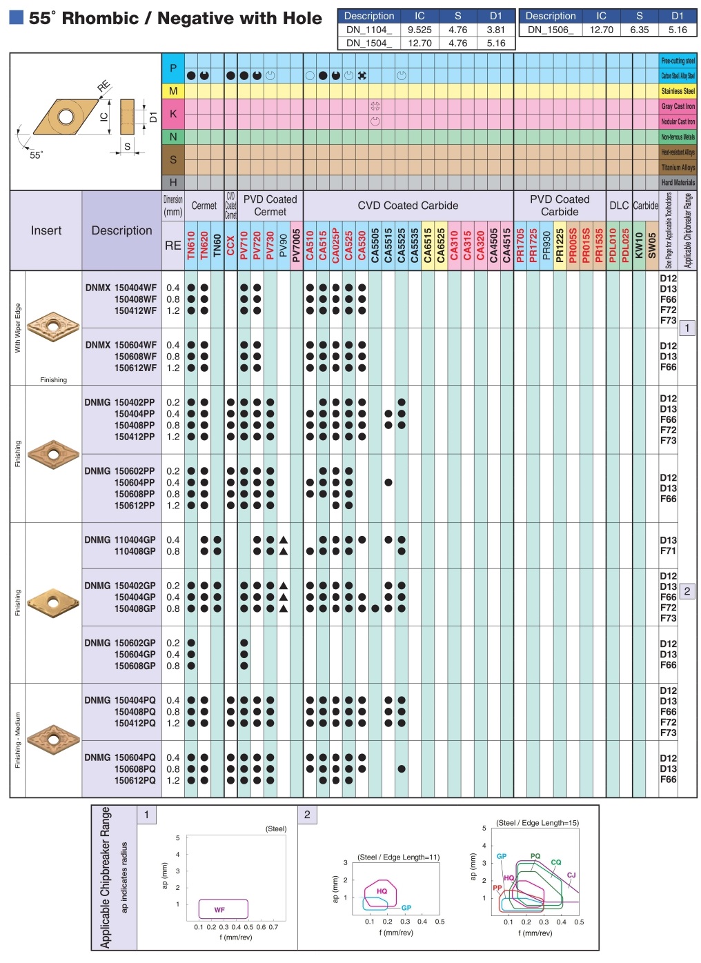| shape | D (55 ° rhombus) | Work material | P (steel) [○] |