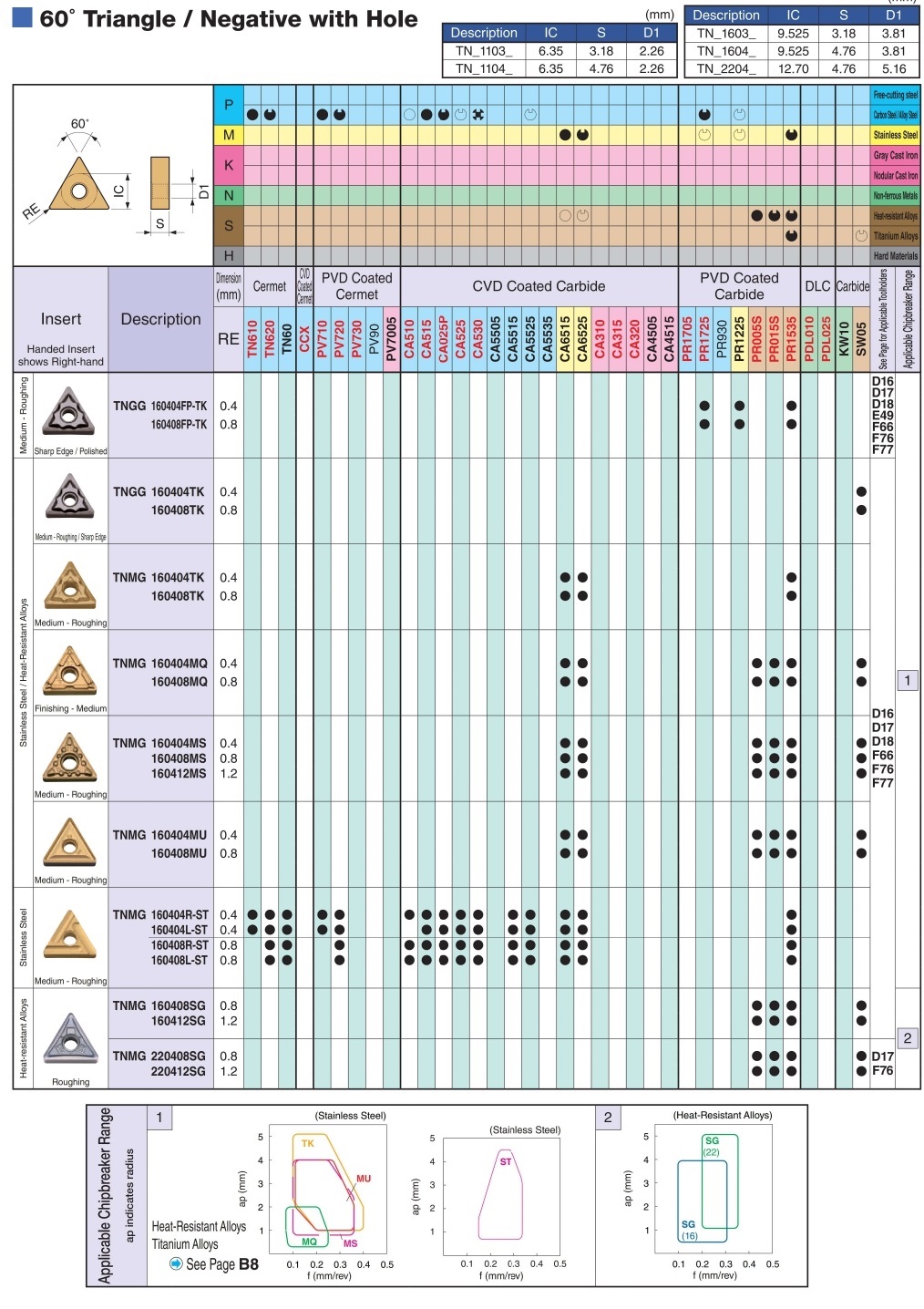 | shape | T (triangle) | Work material | M (stainless steel) [○] / S (heat resistant alloy / titanium alloy) [○] |