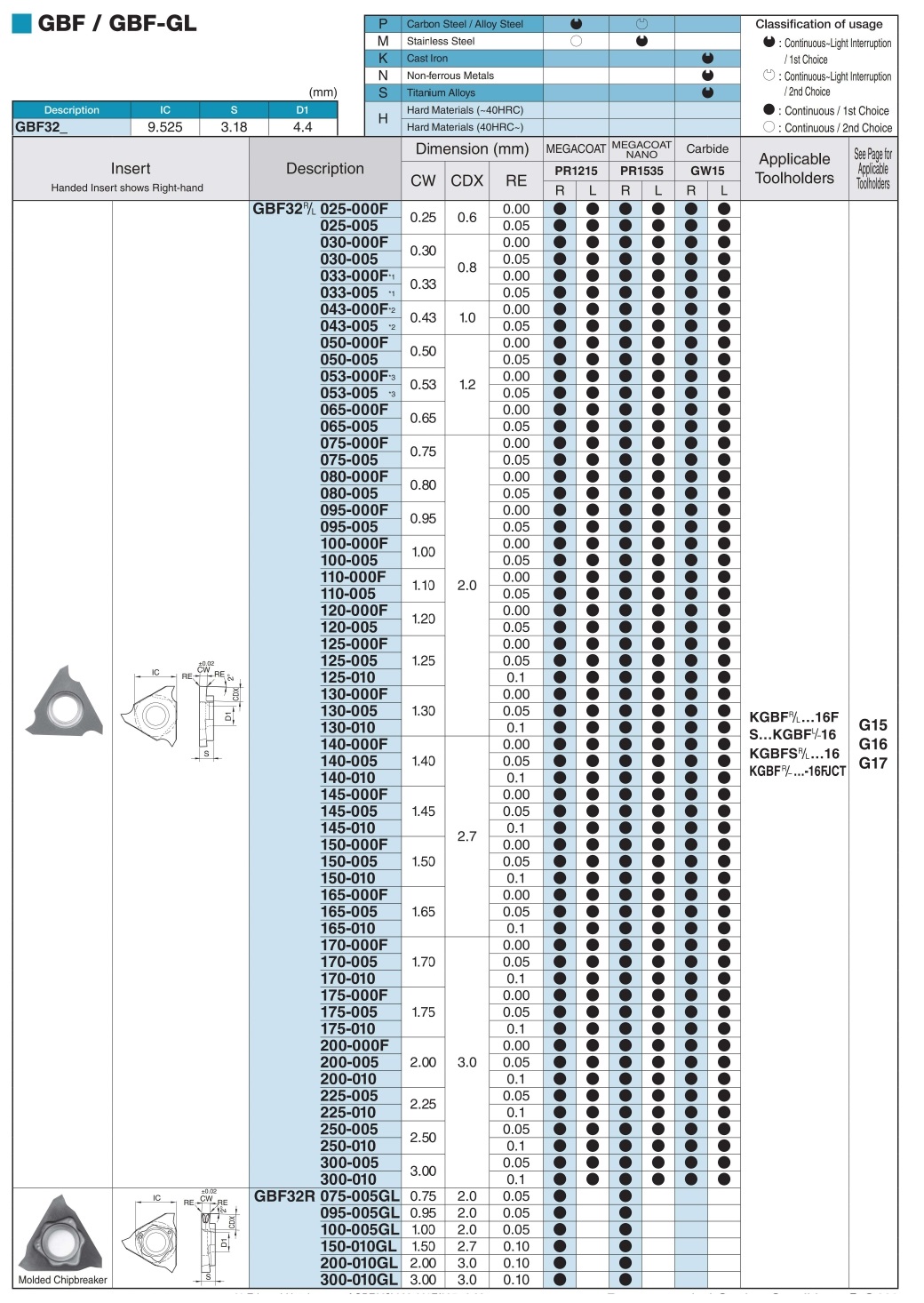| Compatible holder | KGBFR1010JX-16F, KGBFR1212JX-16F, KGBFR1616JX-16F, KGBFR2020JX-16F, S16F-KGBFL16, S19G-KGBFL16, S19K-KGBFL16, S20G-KGBFL16, S20K-KGBFL16, S22K-KGBFL16, S25.0 KGBFSL1010JX-16, KGBFSL1212JX-16, KGBFSL1616JX-16, KGBFR1220H-16FJCT, KGBFR1625H-16FJCT, KGBFR2025H-16FJCT | Grade symbol | PR1535 |