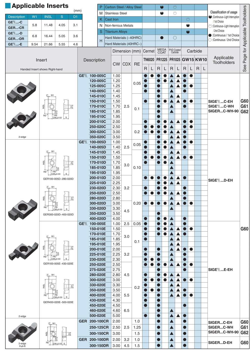 | Use | Grooving | Corner R (nose R) (mm) | 0.05 |