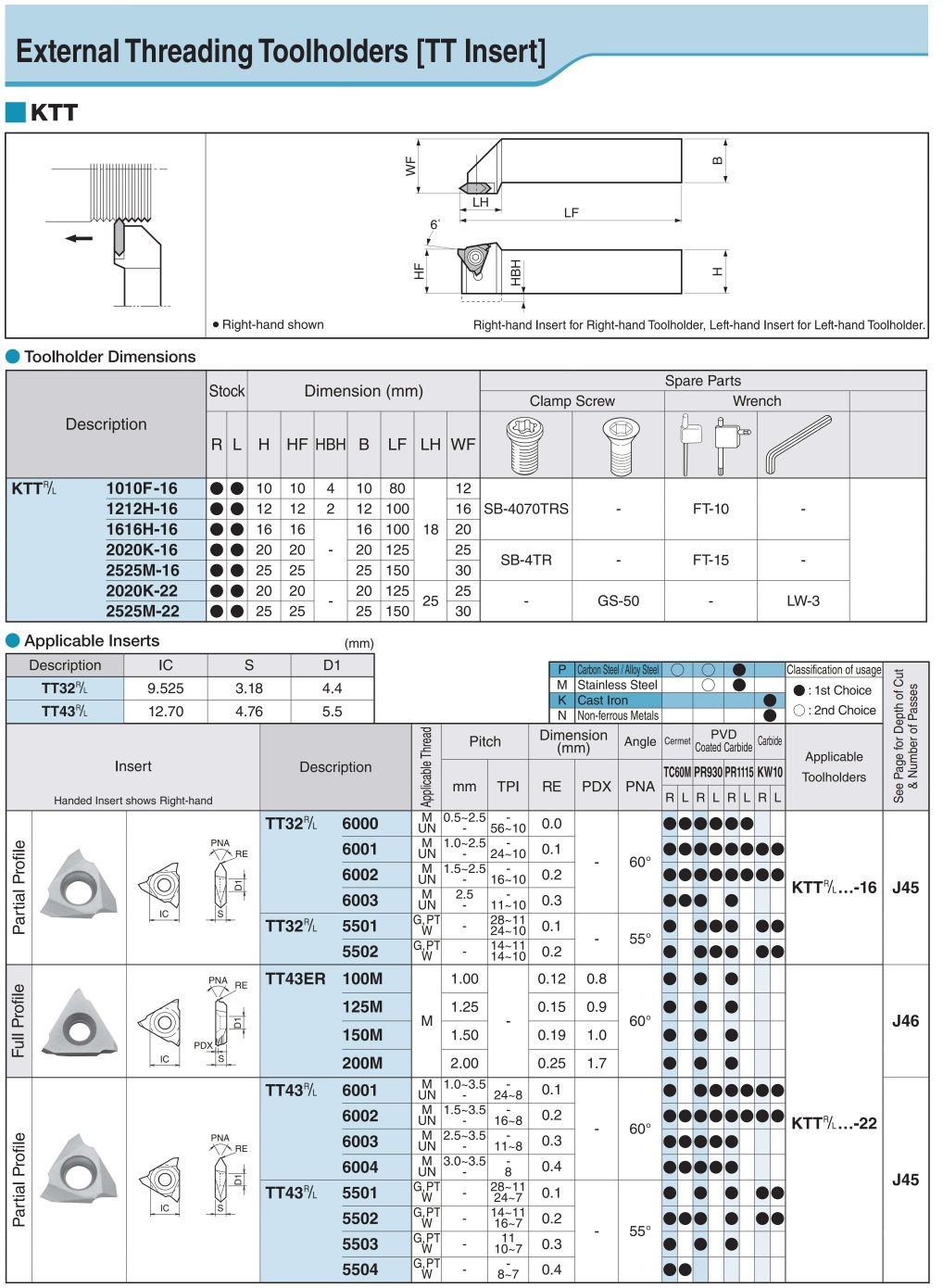 | Processing application | Outer diameter | Screw type | General purpose 60 ° |