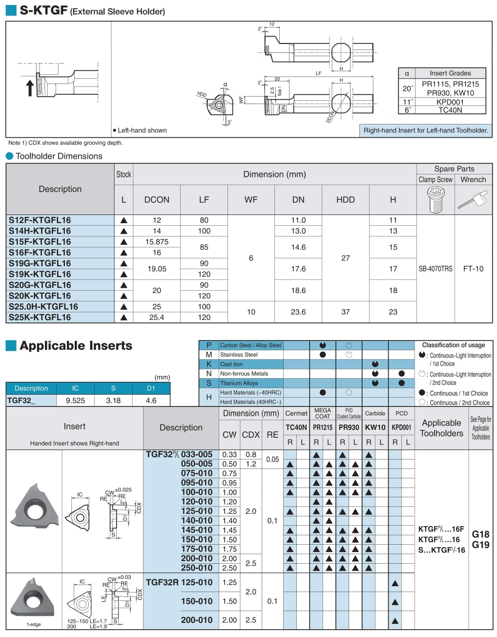 | Compatible holder | KTGFR ... 16F, KTGFR ... 16, S ... KTGFL16 | Grade symbol | PR1215 |
