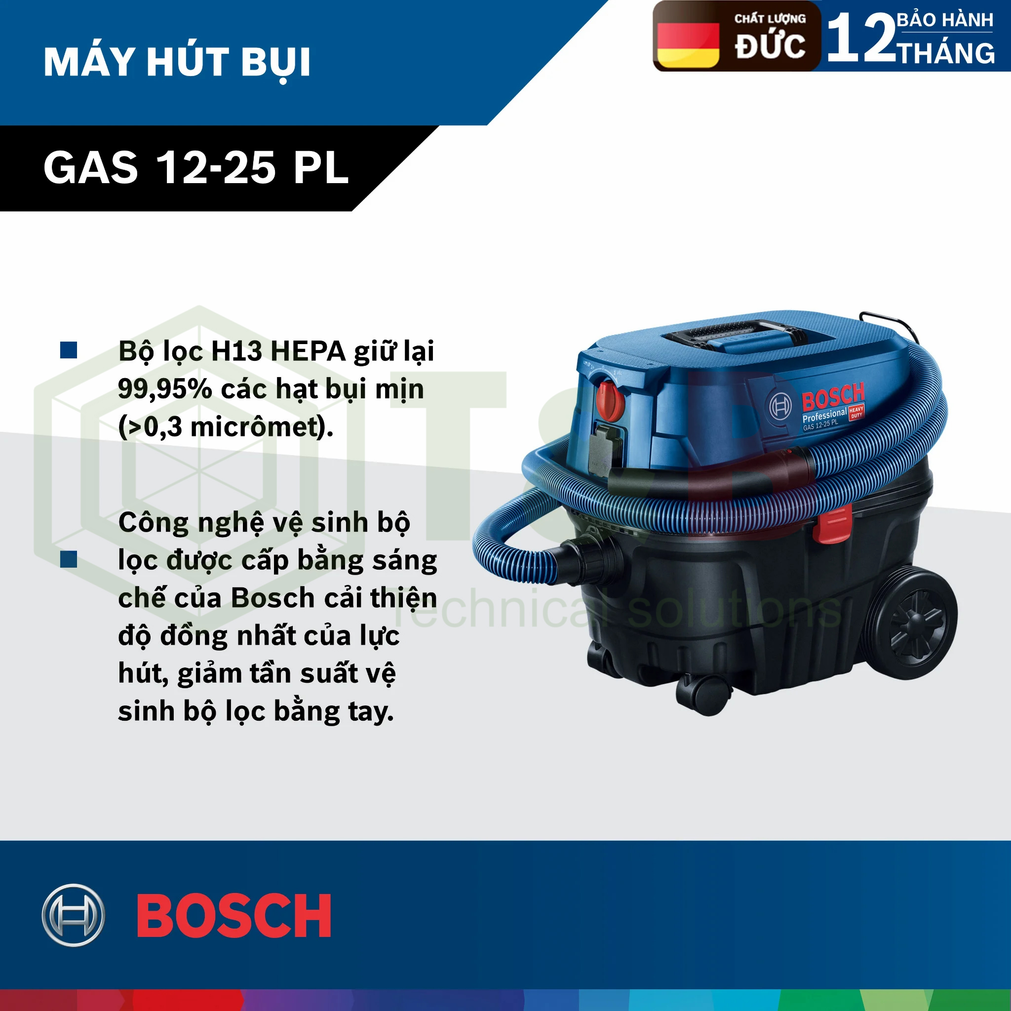 Mua Máy hút bụi Bosch GAS 12-25 tại Kết Nối Tiêu Dùng, Quý Khách sẽ được bảo hành chính hãng 12 tháng.