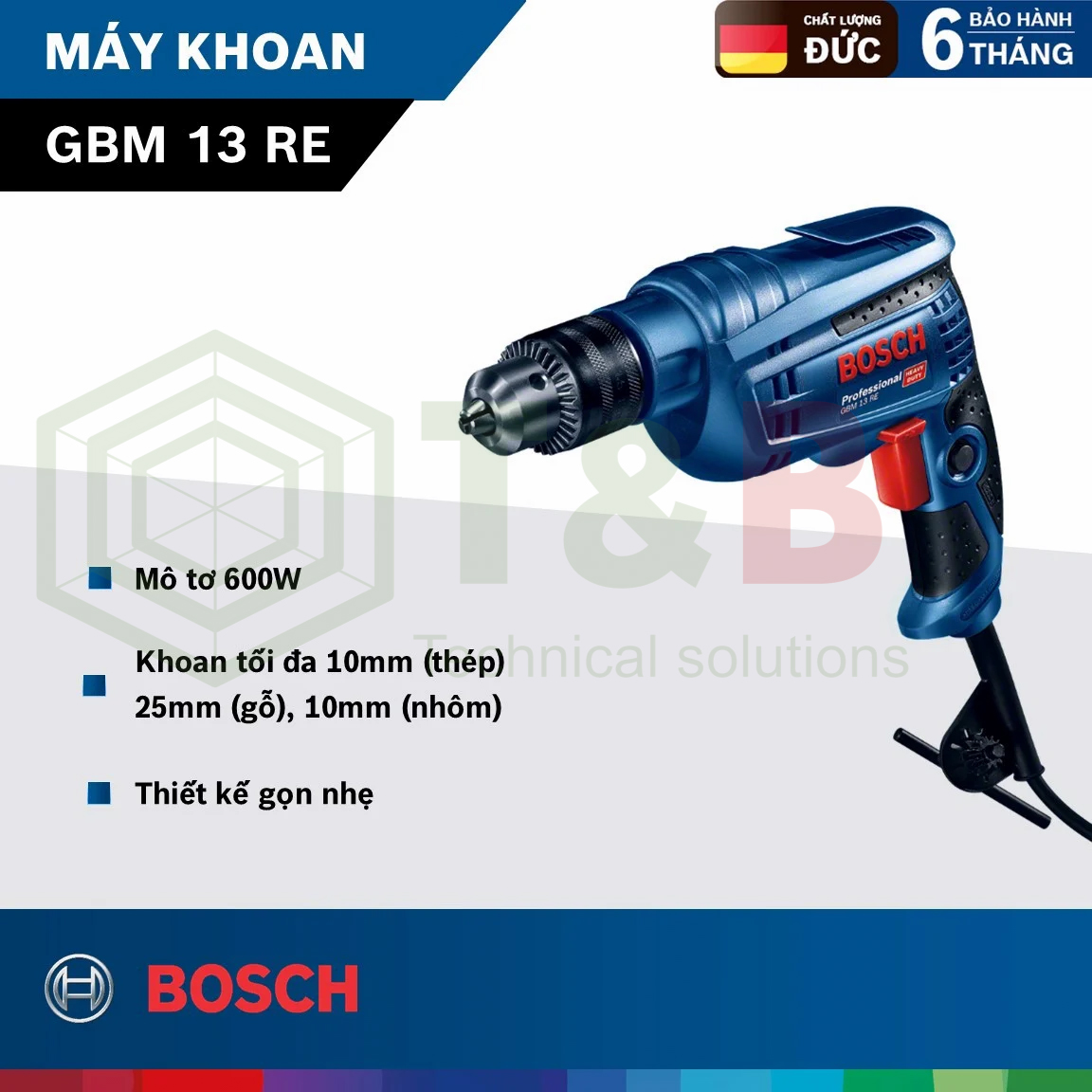 - Bosch GBM 10RE được dùng để khoan lỗ trên các bề mặt chất liệu như: tường, gỗ, thép, bê tông, các vật liệu cứng. Sản phẩm có tính ứng dụng cao trong các ngành công nghiệp, cơ khí, xây dựng, sửa chữa...