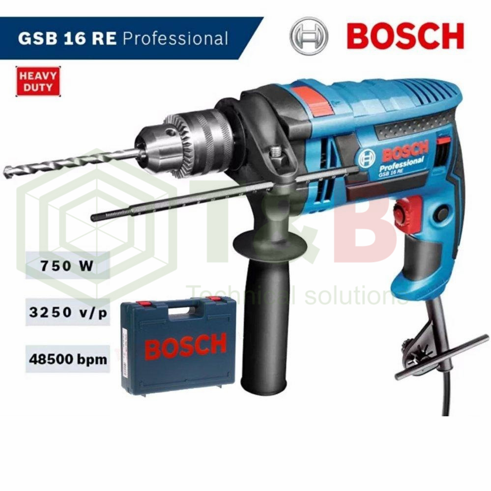 - Máy khoan động lực Bosch GSB 16 RE cải tiến với tỷ lệ va đập ở tốc độ không tải 0 - 3250 vòng/phút. giúp cho công việc của bạn thực hiện nhanh chóng. Với cấu tạo này, bạn hoàn toàn có thể sử dụng máy khoan động lực Bosch GSB 16 RE cải tiến để khoan trên nhiều bề mặt chất liệu như gỗ, bê tông, kim loại. Đặc biệt, mũi khoan có thể tháo lắp dễ dàng phù hợp mục đích công việc của bạn.