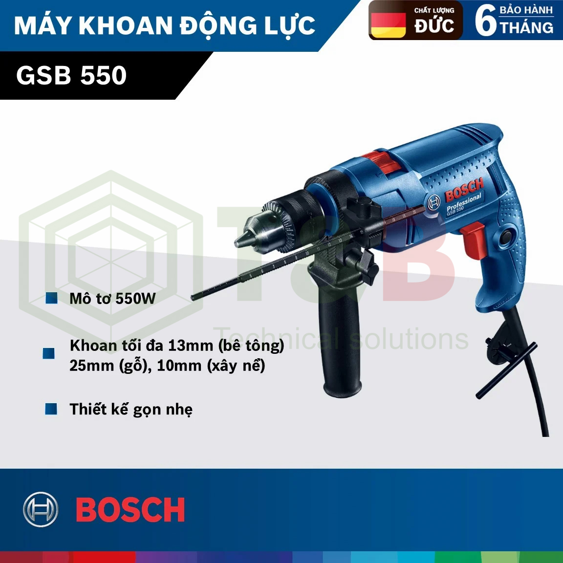 Bộ sản phẩm máy khoan vật liệu công nghiệp BOSCH GSB 550 là dòng thiết bị có nguồn gốc xuất sứ đến từ một trong những nhãn hiệu hàng đầu thế giới trong các lĩnh vực sản xuất, sửa chửa, thiết kế và lắp ráp các thiết bị và dụng cụ chạy bằng điện dân dụng hoặc dụng cụ điện cầm tay chuyên nghiệp nổi tiếng với chất lượng sản phẩm cao và độ bền bĩ kéo dài qua năm tháng nguồn gốc đến từ liên bang Đức, thương hiệu BOSCH.