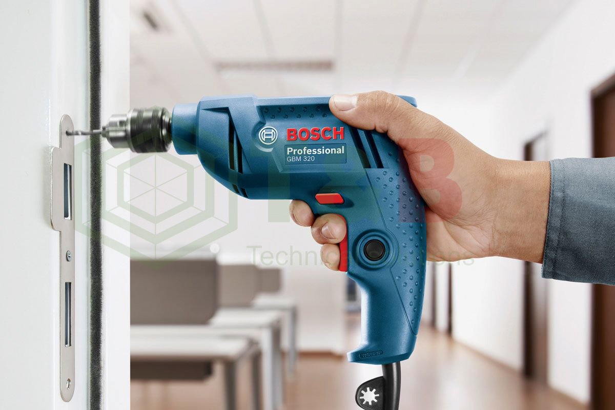 - Bosch GBM 320 giúp bạn vận hành đơn giản và an toàn với độ chính xác cao, trên mọi chất liệu như tường, thép, gỗ....cho khả năng vận hành liên tục với nút khóa chết công tắc.
