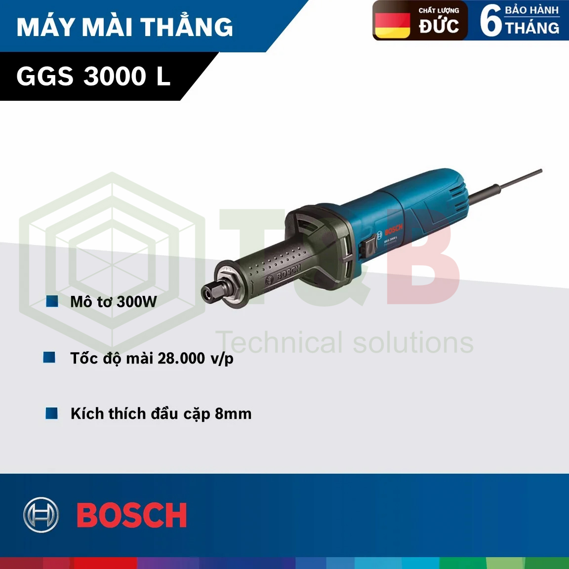 Máy mài thẳng Bosch 300W GGS 3000L 25mm là loại dụng cụ cầm tay được dùng rất phổ biến ở Việt Nam do tính đa dụng của nó. Những người yêu thích DIY (tự tay làm những thứ mình thích) hẳn ai cũng sở hữu ít nhất 1 máy mài góc trong bộ sưu tập dụng cụ DIY của mình. Khi sử dụng, bạn cần đọc kỹ hướng dẫn an toàn của nhà sản xuất.