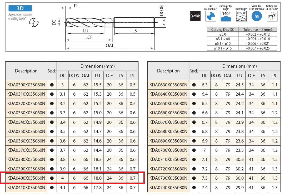 Mũi Khoan 4.0mm KDA Kyocera Model KDA0400X03S060N