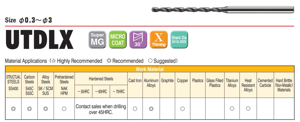 Mũi Khoan φD 0.3 - 3mm Union Tool UTDLX