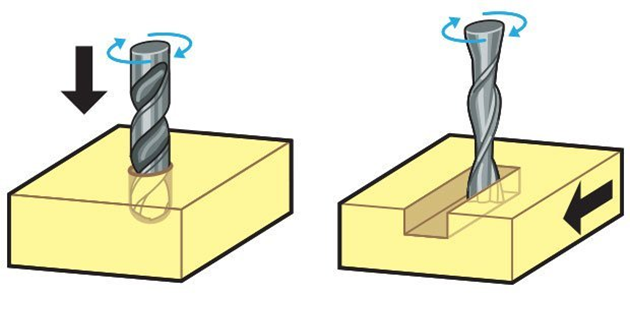 Dao phay có thể cắt cả hai bên trục và cắt theo chiều ngang của vật liệu.