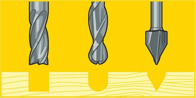 Dao phay cầu thường rất lý tưởng cho việc viền 3D. Dạng đầu đuôi cá sẽ ứng dụng dùng để tạo mặt phẳng. Đầu chữ V thì sử dụng cho khắc, đặc biệt là để làm dấu hiệu.
