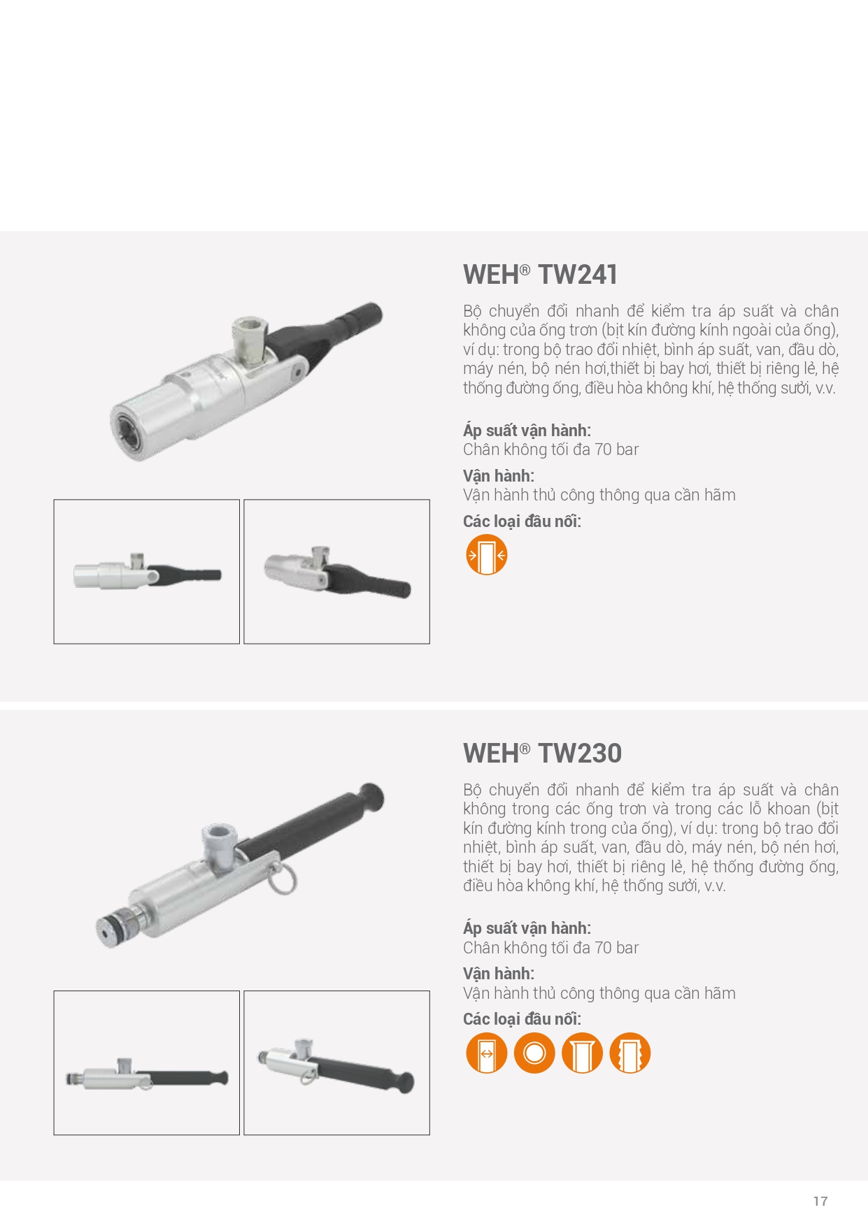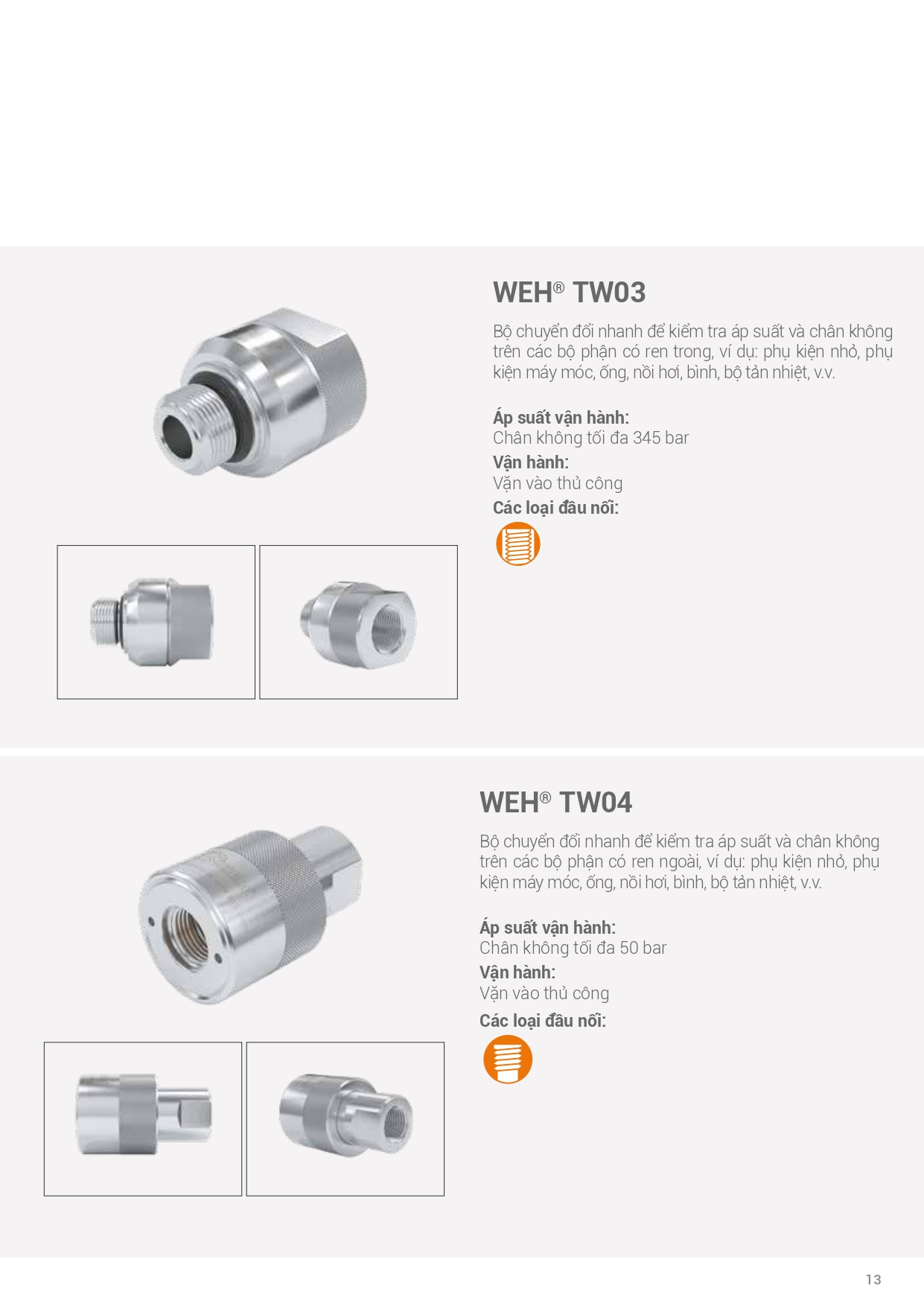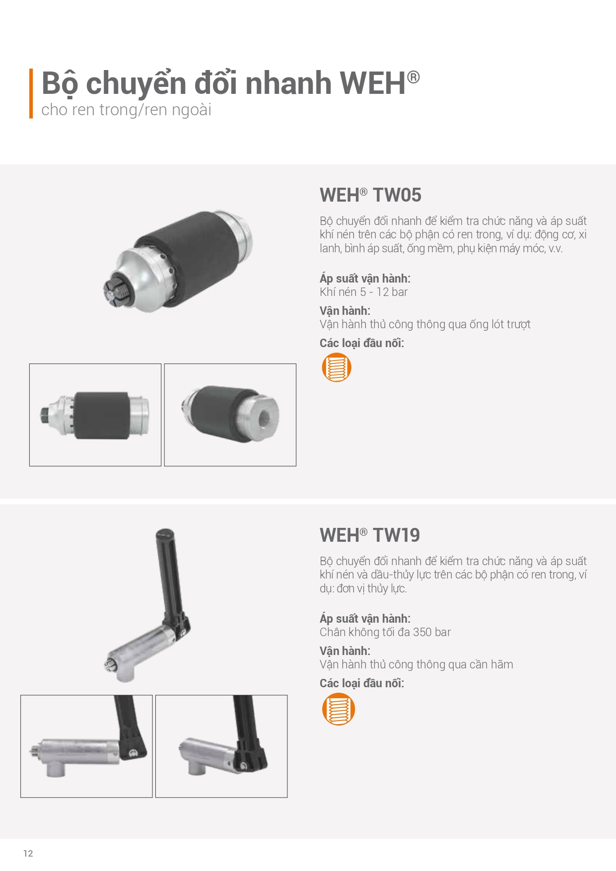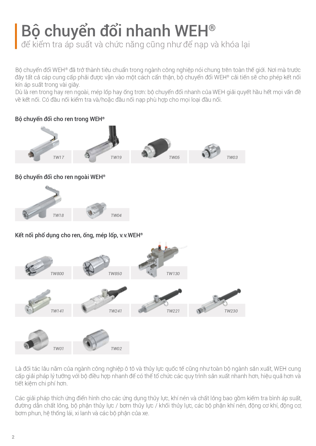 CÔNG TY TNHH THƯƠNG MẠI VÀ DỊCH VỤ KỸ THUẬT T&B VIỆT NAM là nhà phân phối chính thức của Dụng cụ khớp nối nhanh, van thương hiệu Weh Gmbh Verbindungstechnik đến từ Đức , chúng tôi cam kết mang đến cho khách hàng những giải pháp tối ưu, sản phẩm chất lượng, giá cả cạnh tranh và thời gian giao hàng nhanh nhất.
