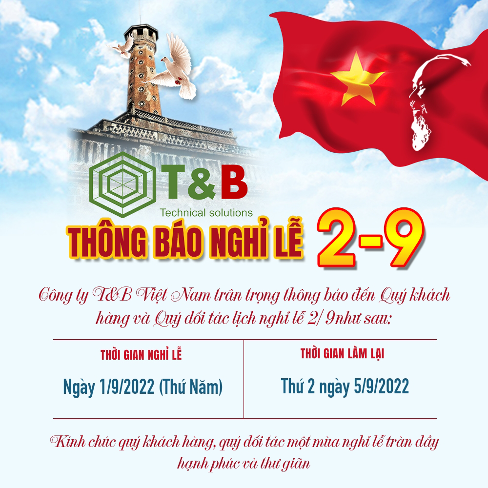 Công ty T&B Việt Nam trân trọng thông báo đến Quý khách hàng và Quý đối tác lịch nghỉ lễ 2/9 như sau: