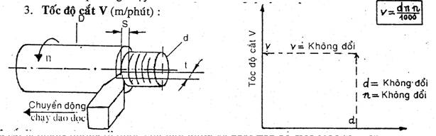 Tốc độ cắt V(m/ph): Là đoạn đường dịch chuyển của lưỡi cắt đối với mặt đang gia công trong một đơn vị thời gian.