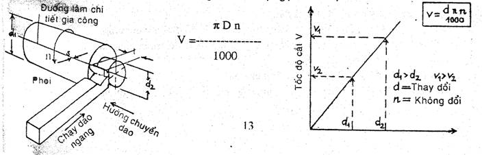 Tốc độ cắt V (m/phút) là quãng đường đi được của một điểm xa nhất trên bề mặt cắt tương đối so với đỉnh dao trong một đơn vị thời gian.
