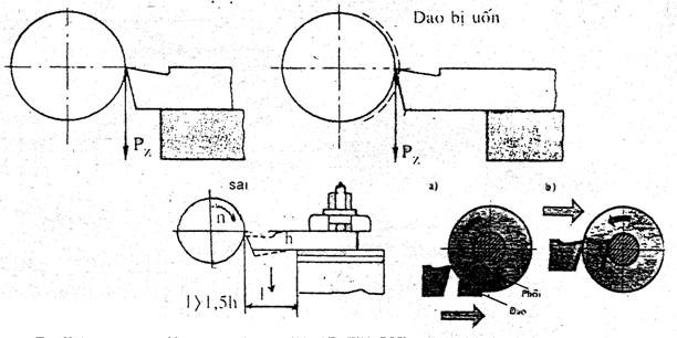 Chiều dài nhô ra khỏi ổ dao không được vượt quá 1,5h (h là chiều cao của thân dao), nếu gá dao với chiều dài nhô ra lớn hơn 1,5h thì trong quá trình cắt gọt dưới tác dụng của lực cắt P sẽ làm cho dao bị uốn hay có thể gẫy dao, khi dao bị uốn mũi dao sẽ ở vị trí thấp tâm dẫn đến kích thước và độ bóng bề mặt chi tiết sẽ thay đổi.