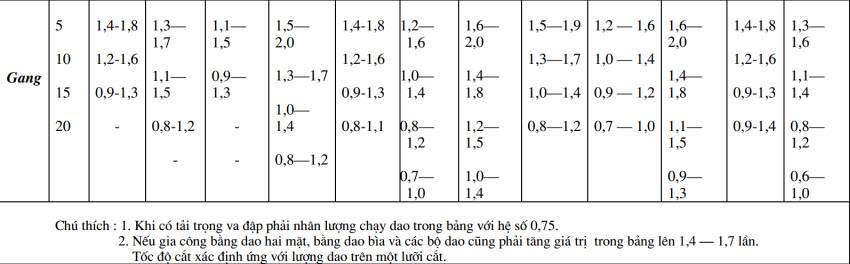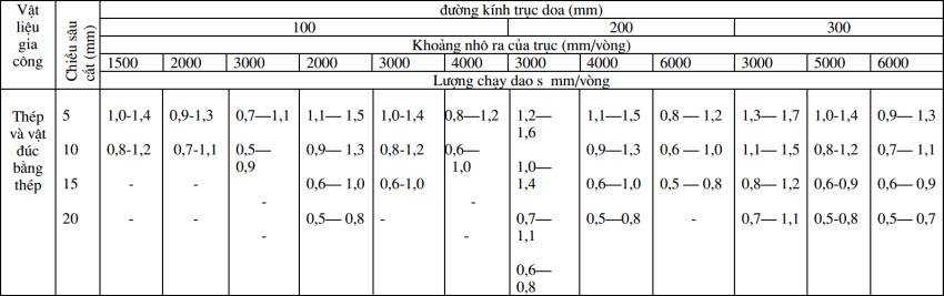 Giữa nhôm, đồng thau và đồng đỏ có lượng chạy dao chênh lệch khá lớn (đồng đỏ < nhôm 50%), với thép thì < 75%.